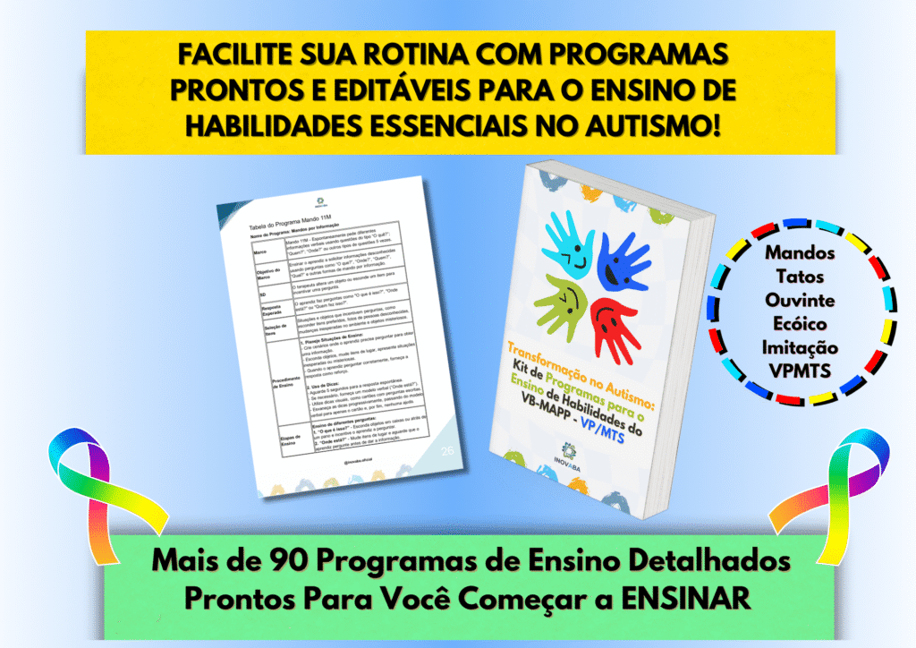 Mando, Tato, Ouvinte, Brincar, Habilidades Sociais, VP/MTS, Imitação, Ecoico, Vocal, LRFFC, Intraverbal, Linguística, Sala de Aula, Leitura, Escrita e Matemática