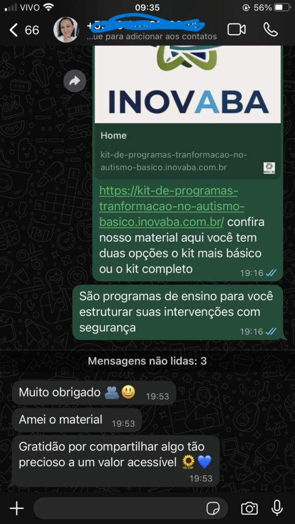 Oferta Especial: Garanta o “Kit de Programas Transformação no Autismo: Para o Ensino de Habilidades Essenciais do VB-MAPP” por apenas R$ 37,00. Uma pequena taxa para grandes avanços na comunicação e comportamento das crianças que você atende.