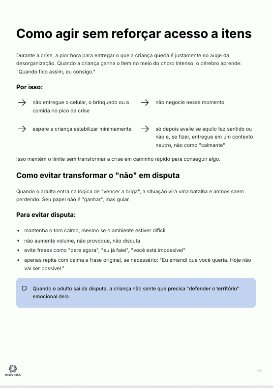 Em vez de apenas reagir às crises, você aprende a prevenir, a agir com segurança e a ensinar habilidades que reduzem os episódios ao longo do tempo.