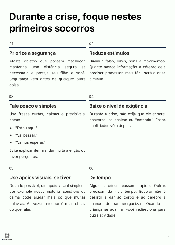 Passo a passo + suportes visuais pra agir sem piorar a situação