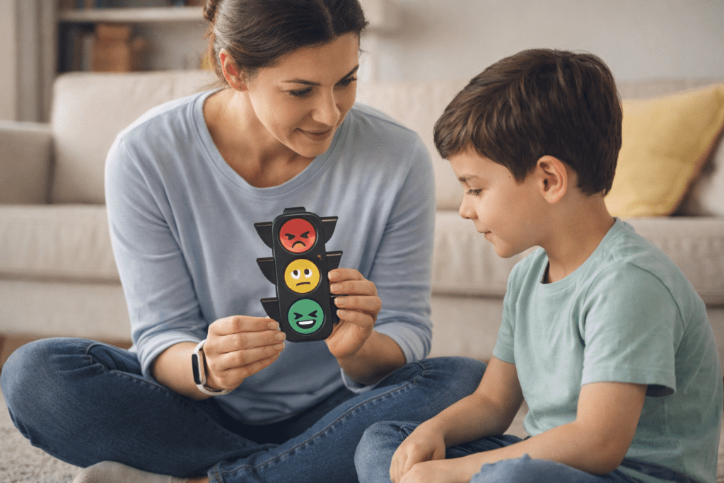 ✅ Bônus: 3 suportes visuais essenciais (Semáforo da Calma + Combinados + Economia de fichas simples)