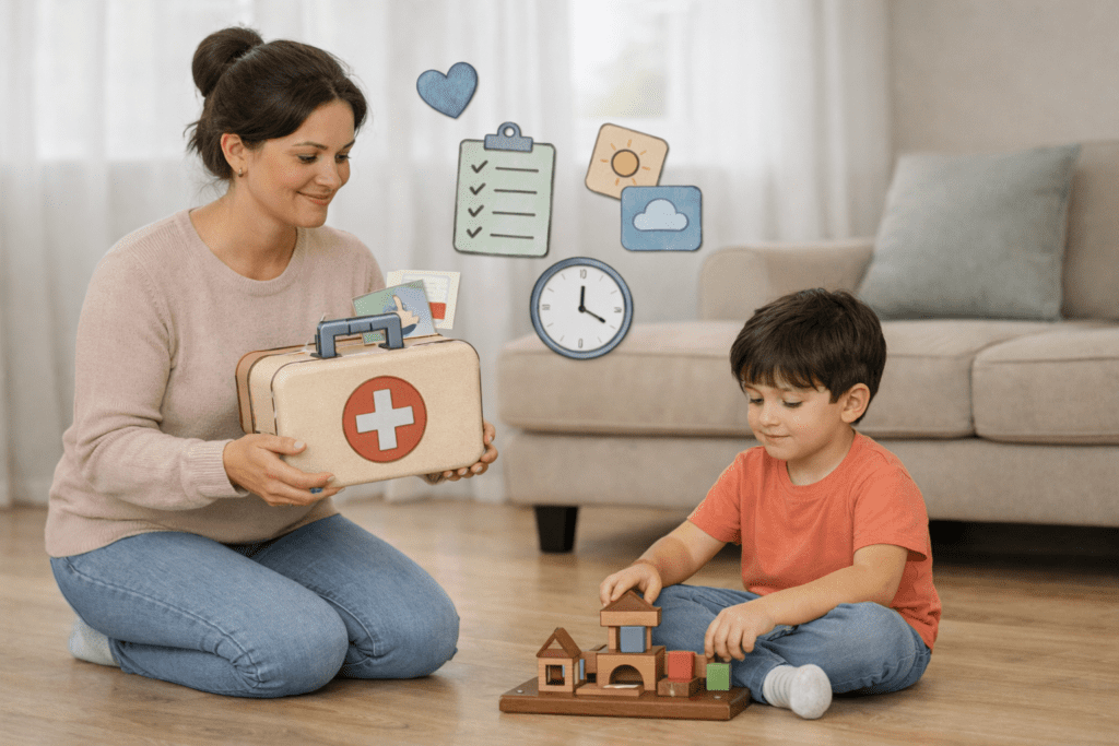 Você vai aprender a usar suportes visuais simples para ajudar seu filho a se acalmar, se organizar e entender o que pode fazer quando está irritado.